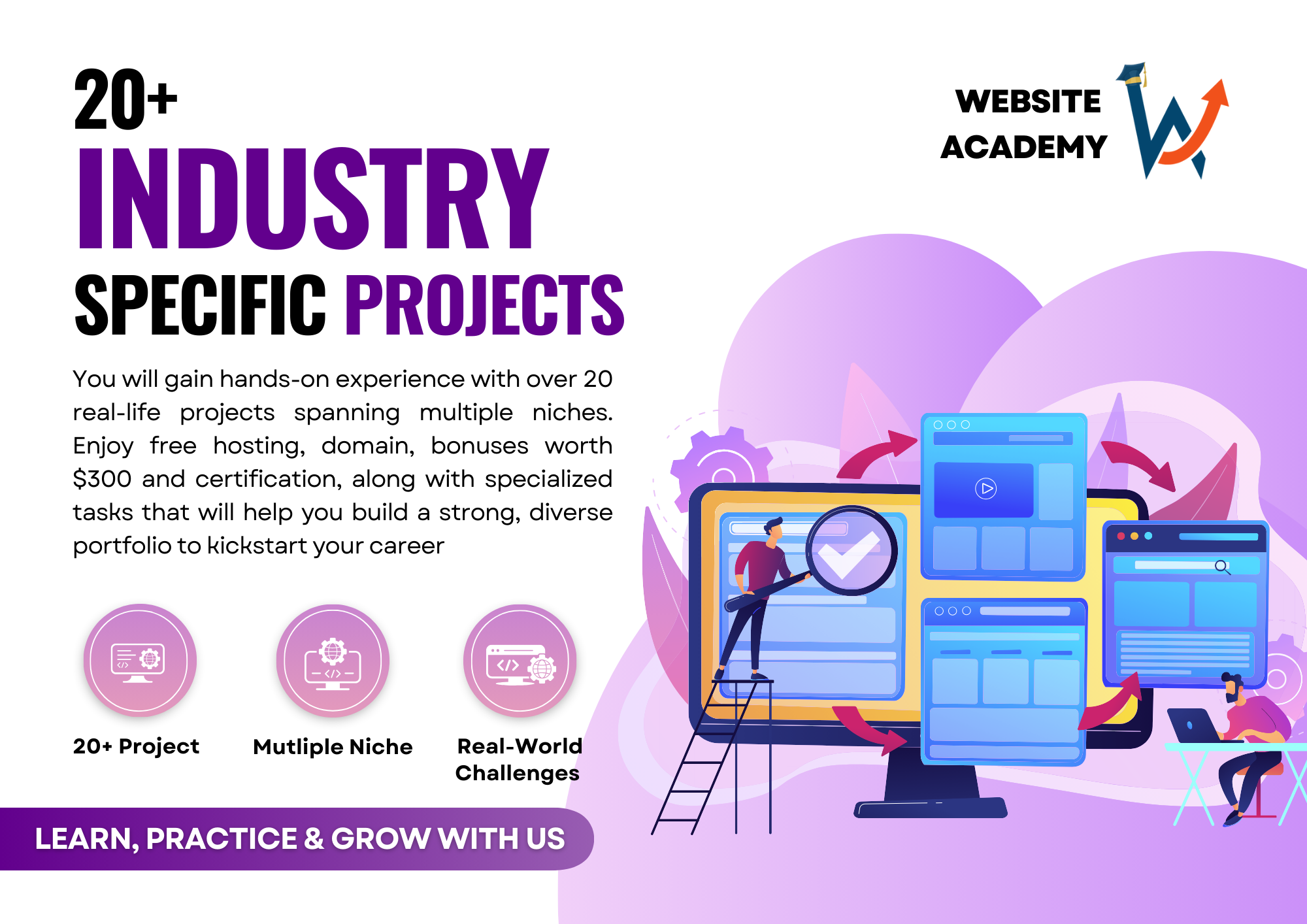 In this course, you're not only learning how to develop websites; you're gaining hands-on experience through real-life projects tailored for skill-building. With over 20+ business-based projects designed for your practice, you won't need to search for clients to enhance your skills. From hosting and domains to certificates and portfolio-building tasks, Website Academy is your complete toolkit for mastering website development. This is a rare opportunity to get everything you need in one place to build expertise. So why are you waiting for?